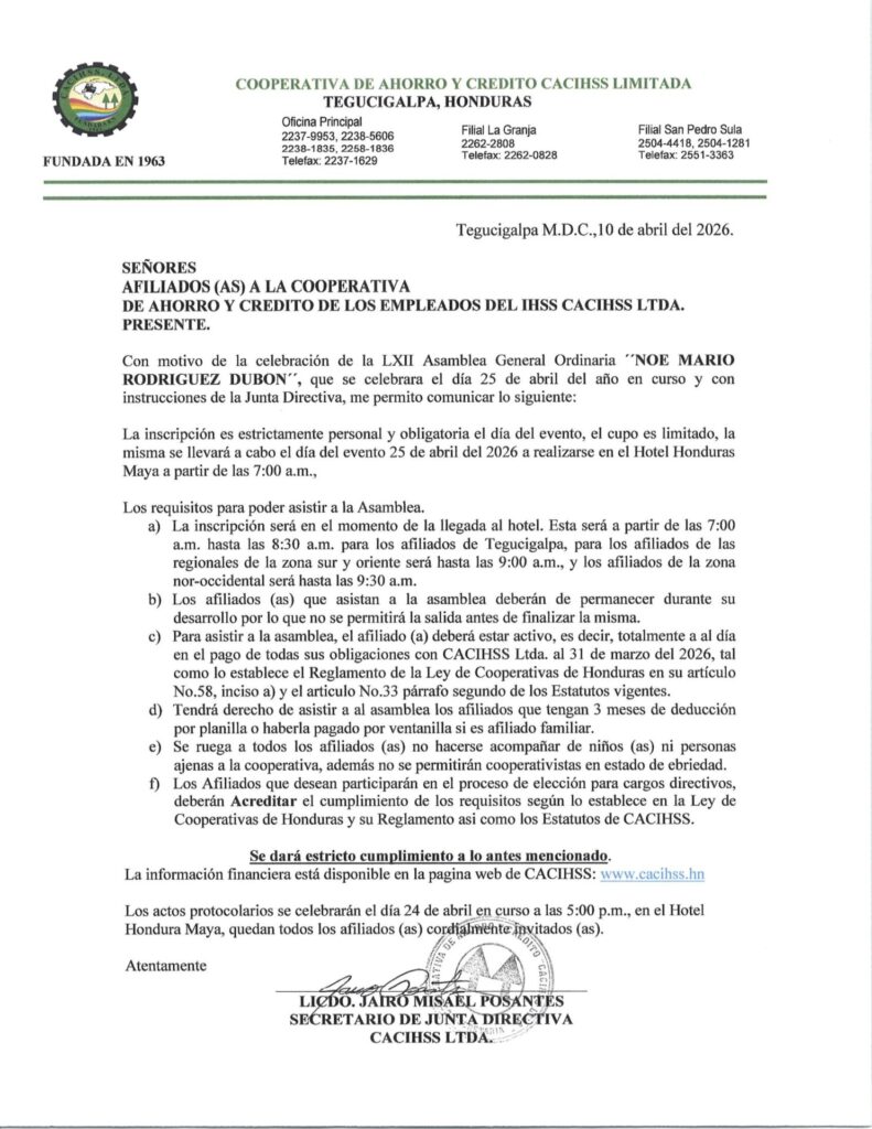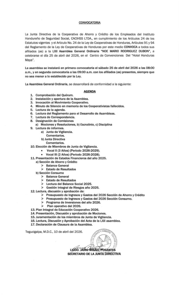 CONVOCATORIA A LA ASAMBLEA LXII 2026